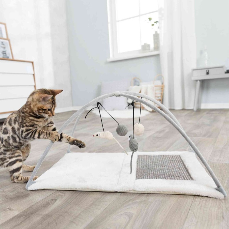 Zábavný koutek pro dospělé kočky i koťata. Se čtyřmi houpajícími se hračkami a sisalovou plochou na škrábání si kočička užije spoustu legrace a nebude se rozhodně nudit.