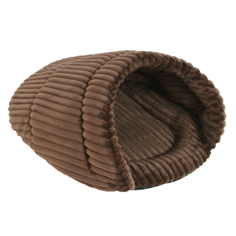 Pelíšek v krásném designu. Skvělé místo na odpočinek i spánek pro vaší kočičku. Silná pěnová výplň se postará o stabilní tvar a velký vchod. Vnitřní stěny a plocha na ležení jsou z měkkého fleecu.