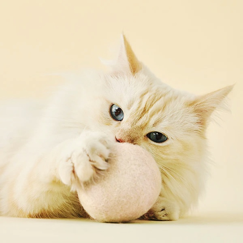 Velký plstěný míček pro kočky. Perfektní tichá hračka, snadno se drží v tlapkách i kutálí po podlaze. Nevydává žádný zvuk, vaše kočka si může s míčkem hrát i v noci, aniž by vás budila. Větší velikost míčku umožňuje kočce zapojit i zadní tlapky.