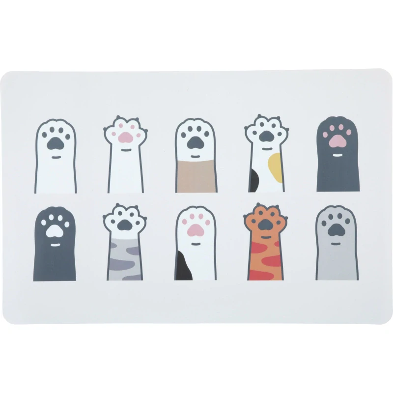 Krásné prostírání pod misky s kočičkami. Podložka chrání podlahu před postříkáním a skvrnami. Je hladká a odolná. Dá se lehce očistit nebo umýt.