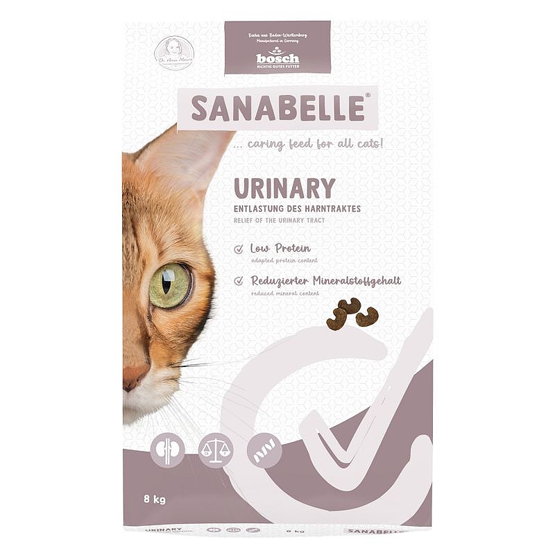 Sanabelle Urinary je krmivo pro kočky určené pro podporu zdravého močového systému. Granule pomáhají předcházet tvorbě struvitů nebo oxalátů v moči a odlehčují ledvinám. Mají nižší obsah bílkovin a některých minerálů, přitom jsou chutné a lehce stravitelné.
