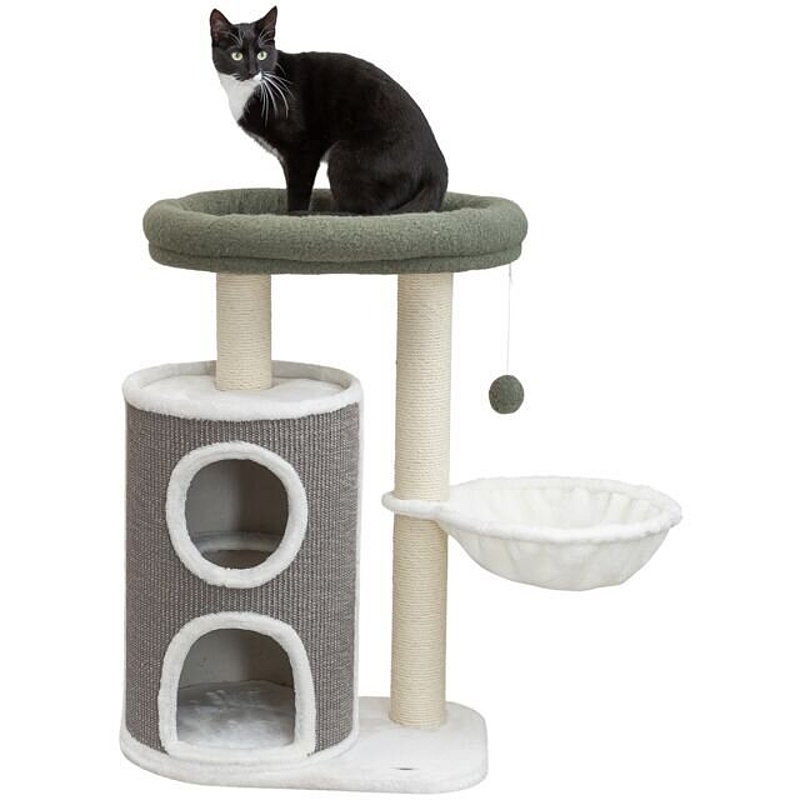 Pro polehávání a spánek je jako dělaná vrchní podesta s měkkým polstrováním a nebo plyšová miska upevněná ke sloupku. Jako bonus má škrabadlo plyšovou bambulku na hraní.
