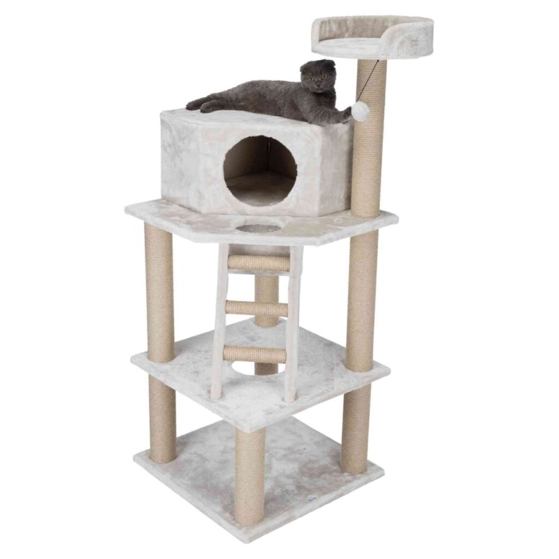 Prostorné stabilní škrabadlo nabízí mnoho škrabacích prvků. Díky několika patrům, kukani a žebříku si na něm kočička užije i spoustu zábavy.