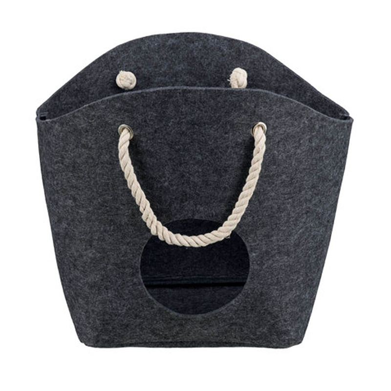 Má Vaše kočička ráda tašky? Pak je tento plstěný pelíšek ideální. Z jedné strany je vchod, z druhé dekorativní potisk. Horní část zdobí madla ze silného provazu.