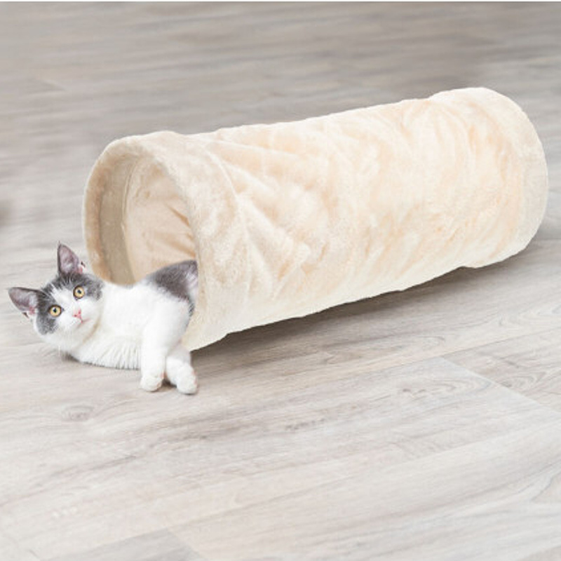 Roztomilý plyšový tunel pro kočky s šustivou folií - to pravé místo pro kočičí lovecké hry, ale i úkryt. Šustivý tunel je jednou z nejoblíbenějších kočičích hraček.
