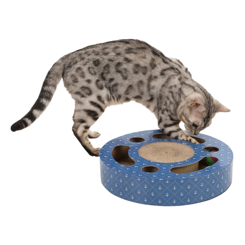 Skvělá hračka pro kočky se škrábací podložkou a míčky. Bubínek z tvrdého kartonu bude pro vaši kočku výzva. Uvnitř hračky se kutálí chrastící míčky, které nelze vytáhnout a uprostřed je plocha na škrábání.