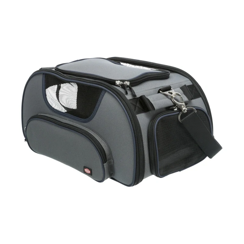 Dno tašky je zesílené a vodotěsné. Pocit jistoty a bezpečí zajistí zvířátku síťované průhledy.