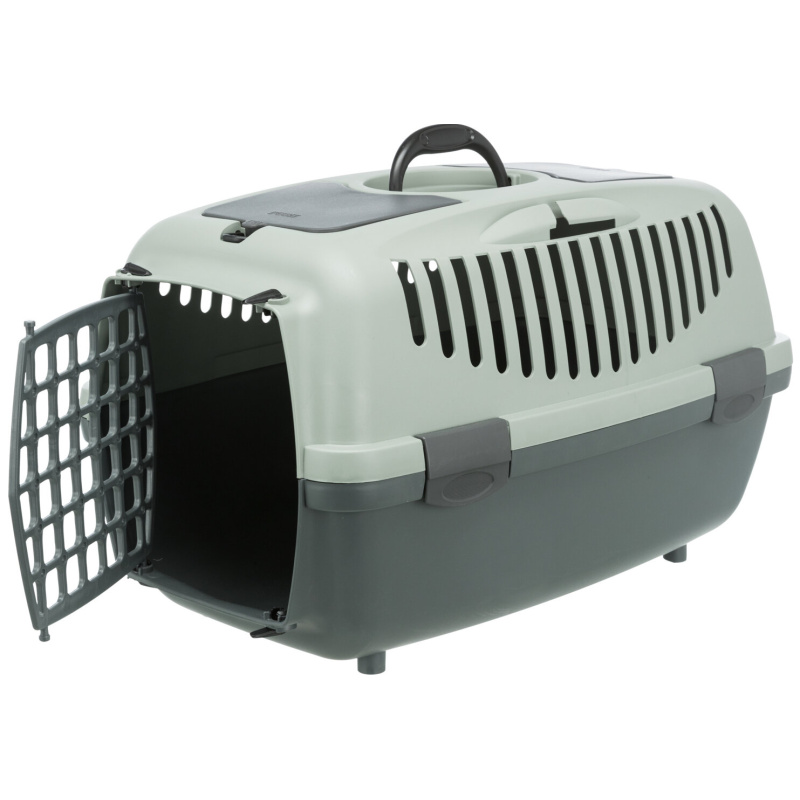 Prostorná odolná přepravka je vhodná i pro velká plemena koček. Má dostatek větracích otvorů, pevné madlo a úchyty pro bezpečností pás v autě.