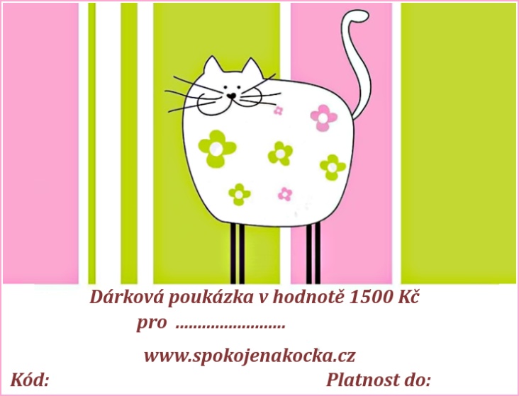 Dárková poukázka má platnost šest měsíců a lze jí využít na jakékoliv zboží z našeho internetového obchodu Spokojenakocka.cz.