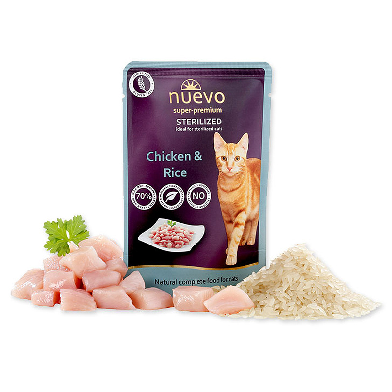 Nuevo Adult Sterilized 85g kuře s rýžíSkladem38 Kč/ ks34 Kč bez DPH