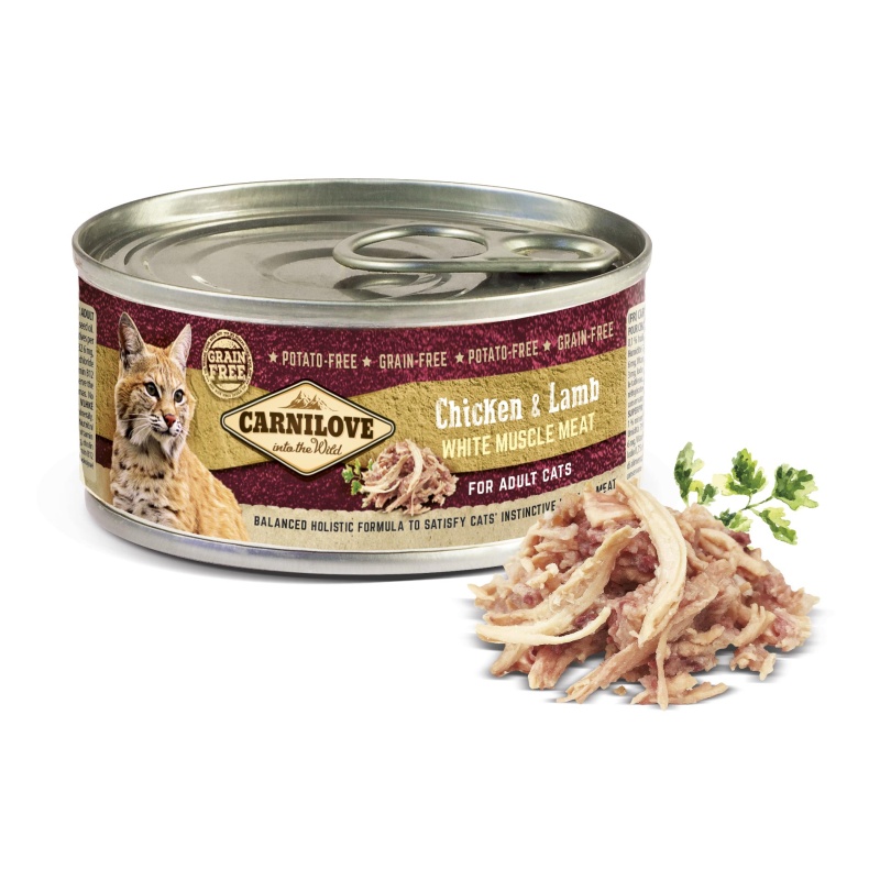 Konzervy Carnilove respektují přirozené výživové potřeby koček. Tato paštika s vysokým obsahem jehněčího a kuřecího masa představuje zdravou svačinu pro kočky.