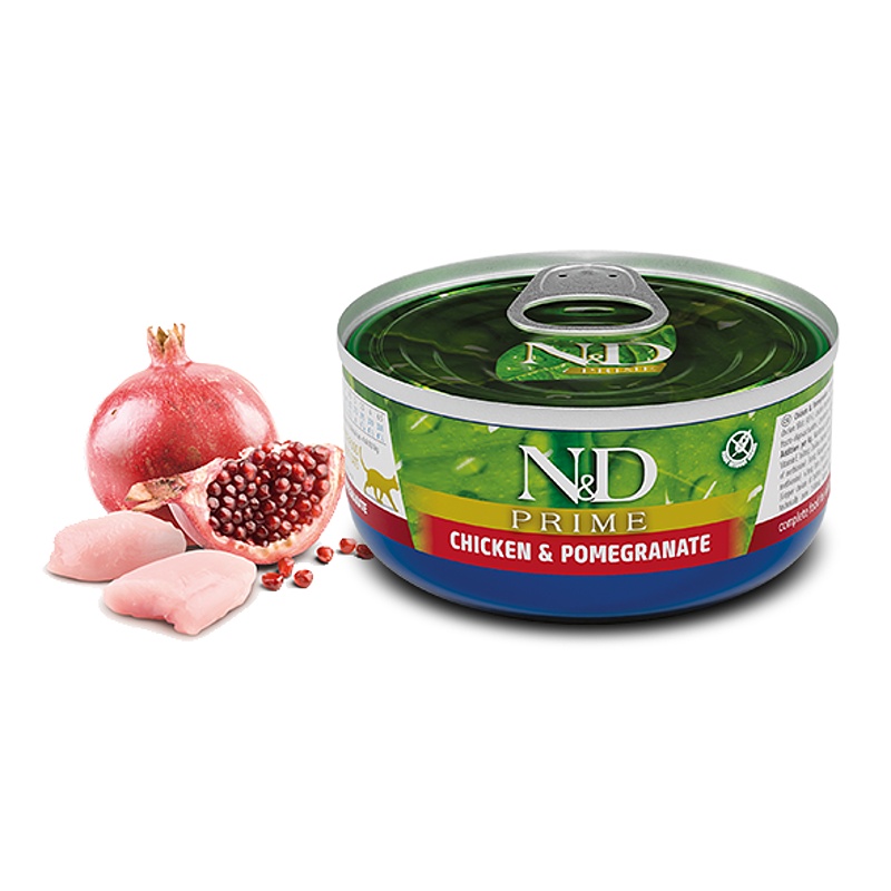 N&D CAT PRIME Adult Chicken & Pomegranate 70gSkladem39 Kč/ ks35 Kč bez DPH