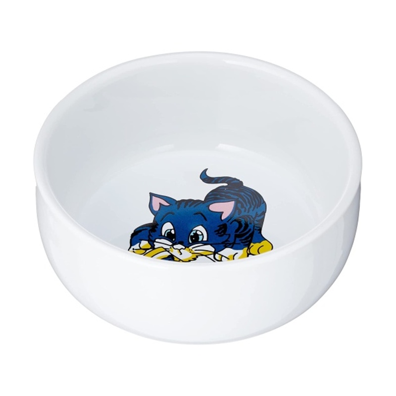 Roztomilá keramická miska pro kočky, s ručně malovaným motivem. Miska je ideální na vodu, granulky i kapsičku.