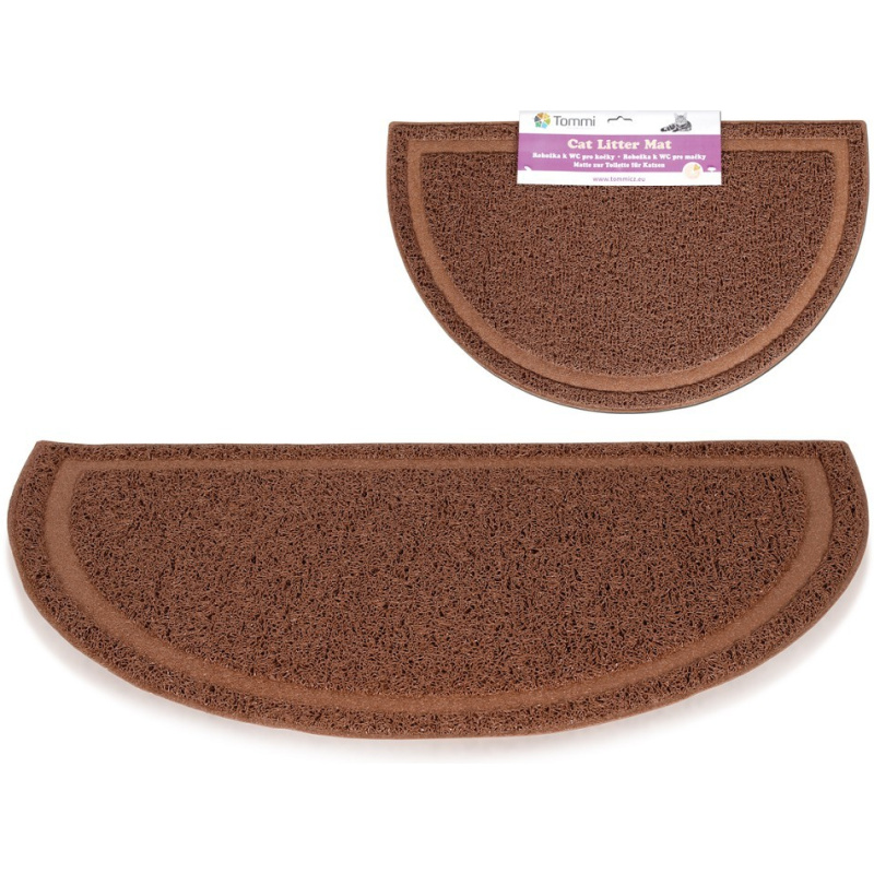 Půlkruhová předložka před kočičí WC z PVC, protiskluzová. Očistí tlapky kočky od podestýlky, okolí toalety tak zůstává čisté. Je doporučeno ji používat rovněž u citlivých koček.