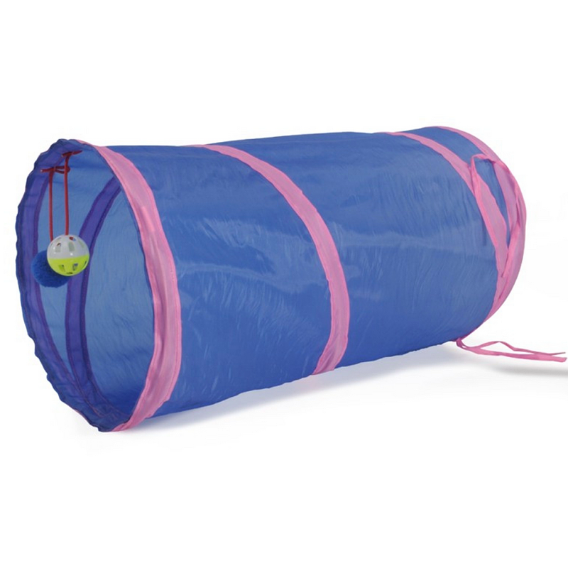 Šustivý tunel pro kočky s dvěma chrastícími míčky na šňůrce, to je ta pravá výzva pro kočičí raubíře. Tunelem může kočička probíhat, schovávat se nebo číhat. Nudit se rozhodně nebude.