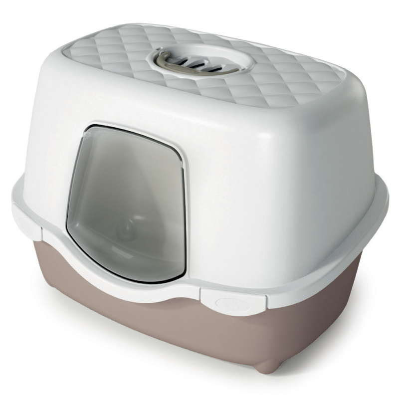 Krytá dostatečně široká toaleta pro kočky s dvířky. Wc má i uhlíkový filtr, který zamezuje pronikání zápachu z wc. Toaleta je prostorná, vhodná i pro větší kočky. Má rukojeť pro snadnou manipulaci a přemístění.